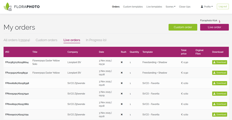 At a glance, you can see which orders are in progress or completed and ready to download.