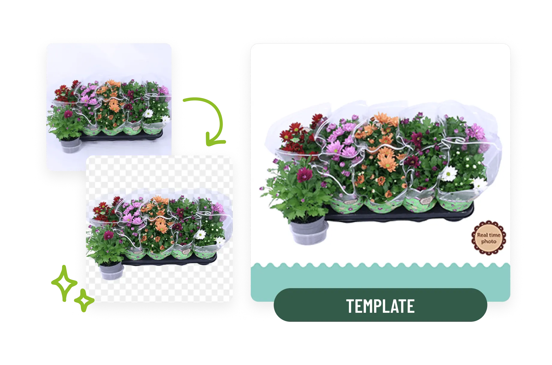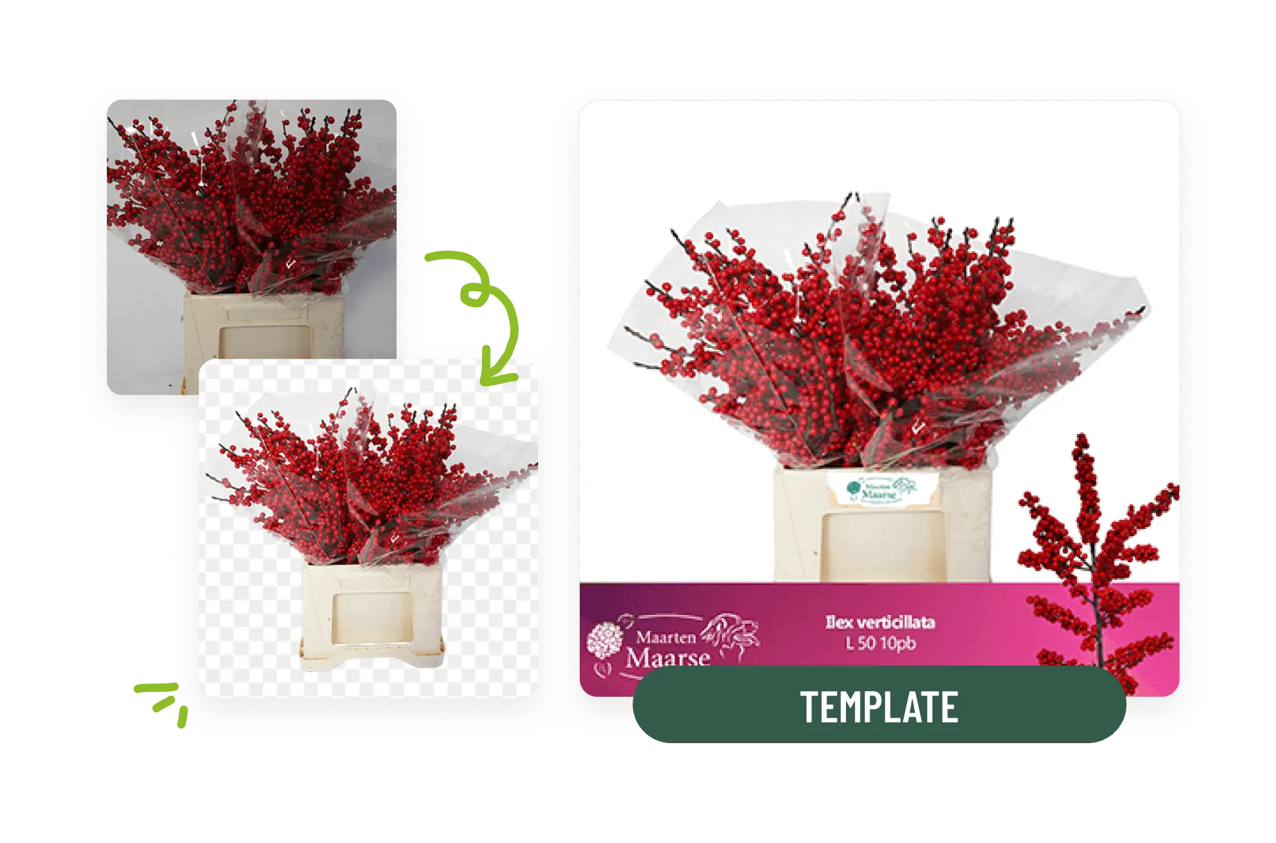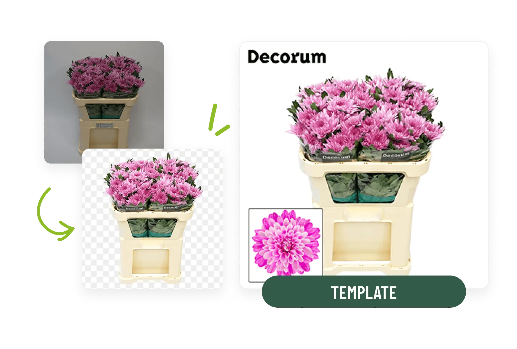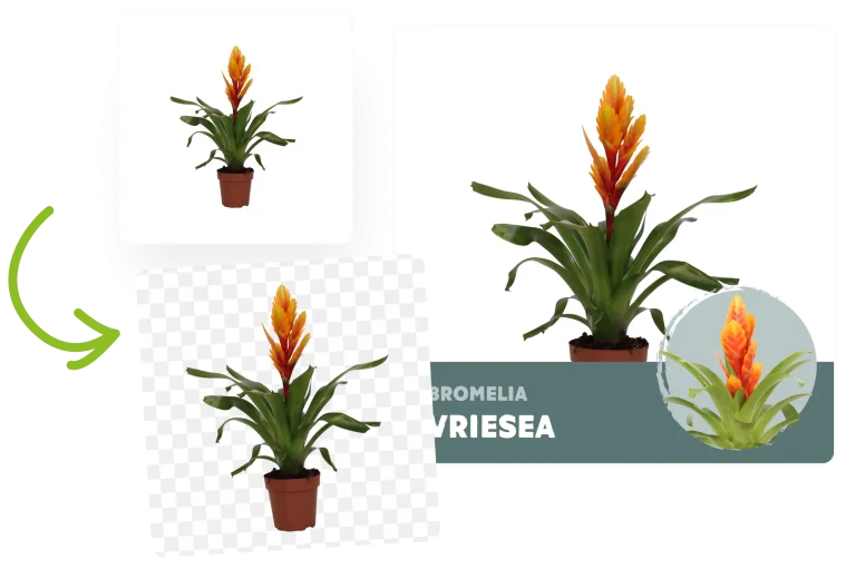 Met Floraphoto Live verwijder je automatisch de achtergrond van je foto en plaats je het product direct in je eigen sjabloon. Zo maak je in enkele seconden perfecte beelden voor veilingklok, aanbodsbank of e-commerce.